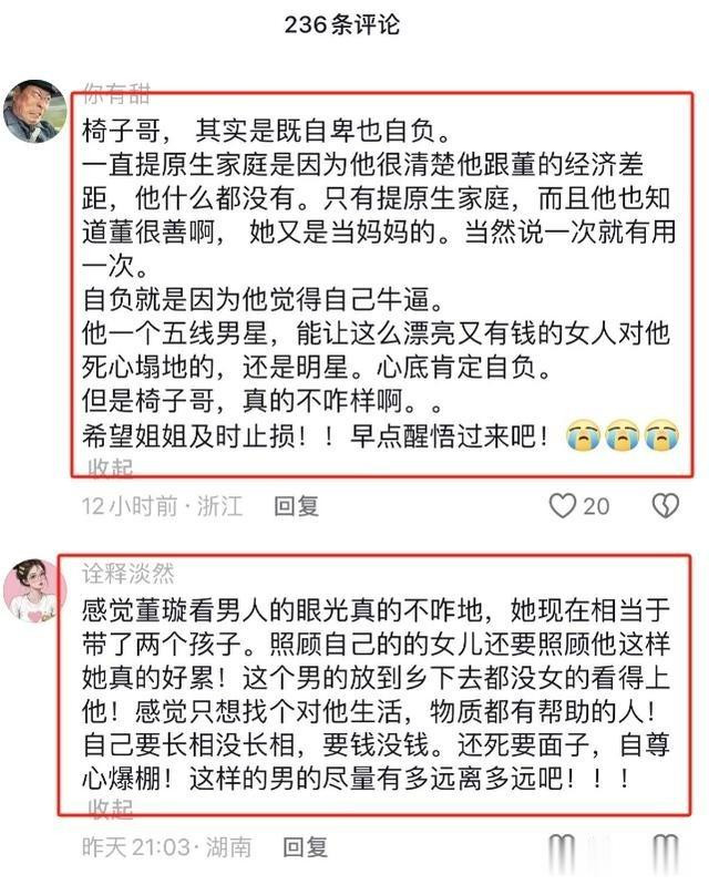 有一回董璇工作到很晚才回家,张维伊不仅没有贴心地关心一下,反而抱怨道:“又让我等。” 这时候,评论区瞬间被网友的吐槽淹没:“人家辛苦工作,回来还被你埋怨,太不体贴了吧。”